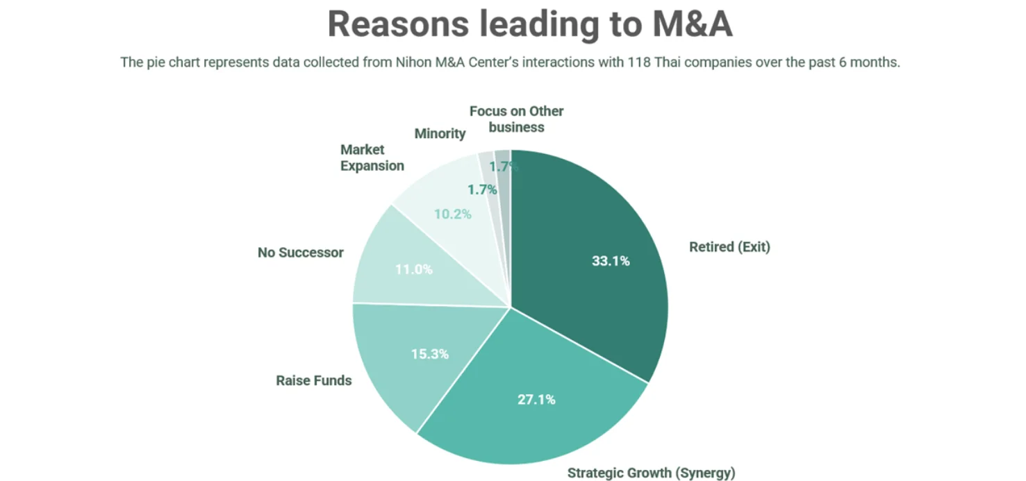 If the buyer company’s annual sales are 1 billion THB, if it can buy a company with annual sales of 400 million THB, group sales will increase by 40% to 1.4 billion THB. In this day and age, a 40% increase in annual sales is a rare occurrence, hence the buyer would be interested in the company as a valuable M&A target.